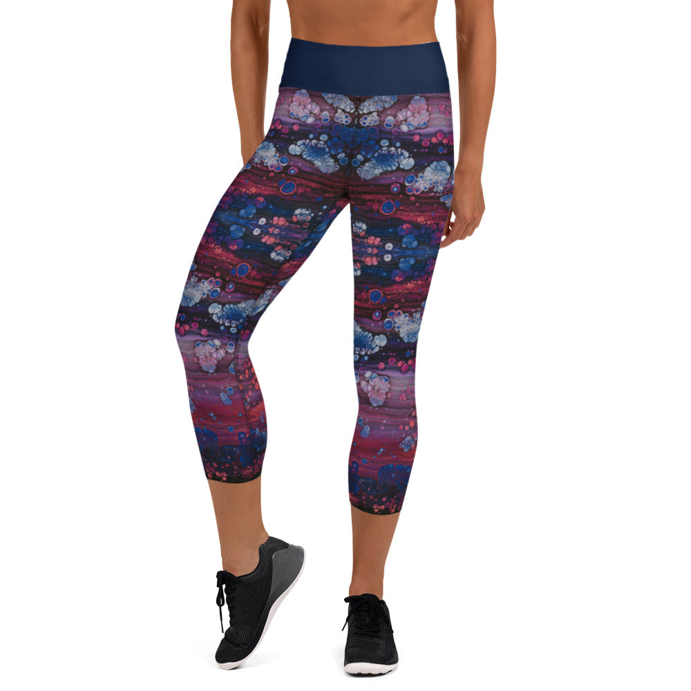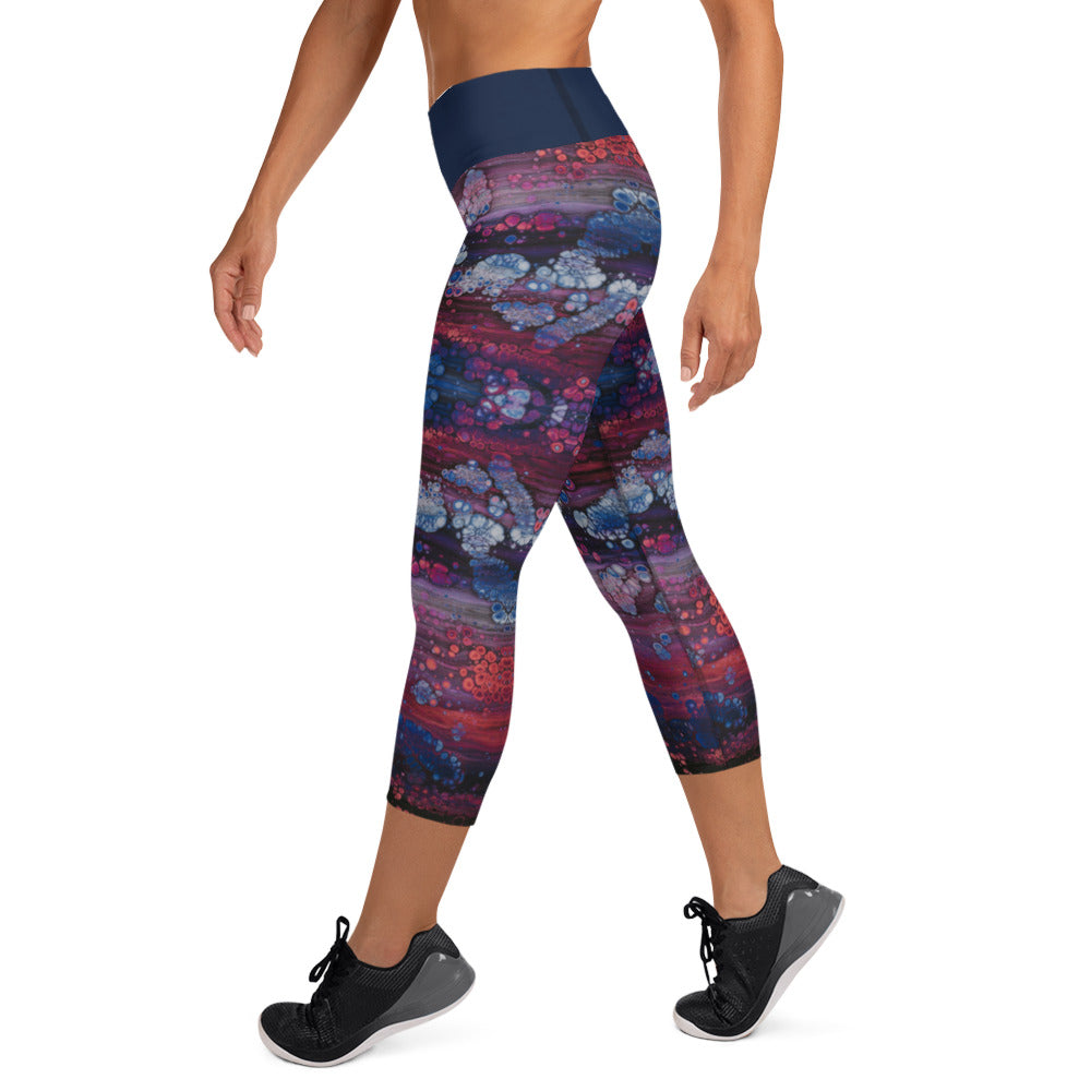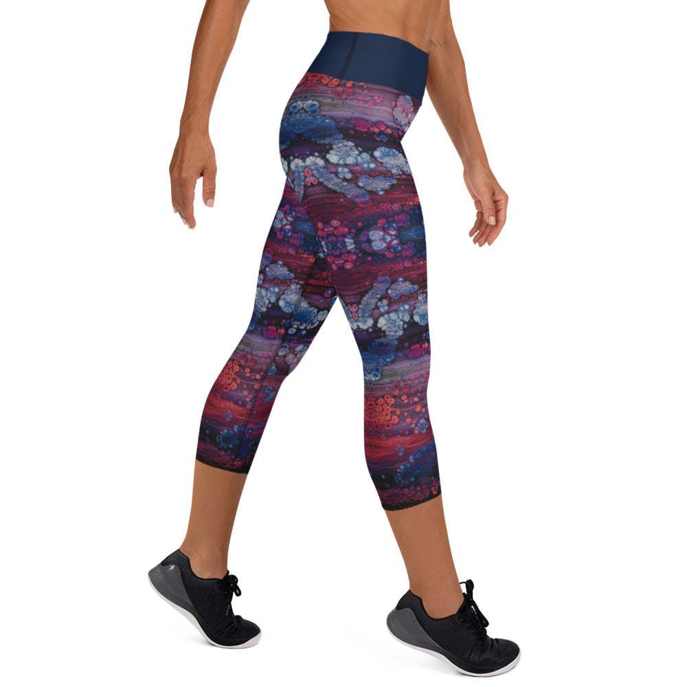 These yoga capri leggings with a high, elastic waistband are the perfect choice for yoga, the gym, or simply a comfortable evening at home.